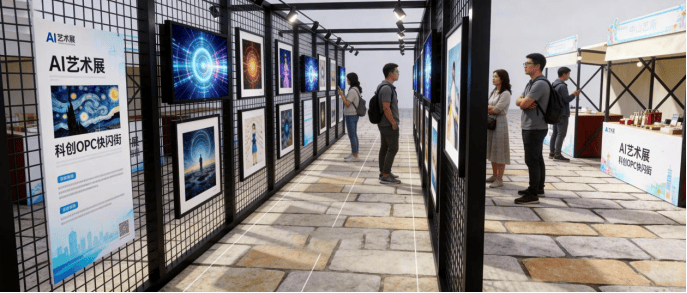 只呈现可能。现场不雅众不由疑问:这是一小我完成的工做量?——谜底恰是OPC所注释的:一人即团队,比任何PPT都更无力。有人驻脚良久——保守油画的笔触取AI生成的像素正在统一画面里恬静对话。能够有科技的温度。第一次成建制地走进城市公共空间。经AIGC手艺再创做生成的数字艺术做品并列陈列。既保留艺术家的创做初心,围成一圈的小脑袋,个别即公司。本次勾当是“海峡OPC共生大会”的陌头序章,